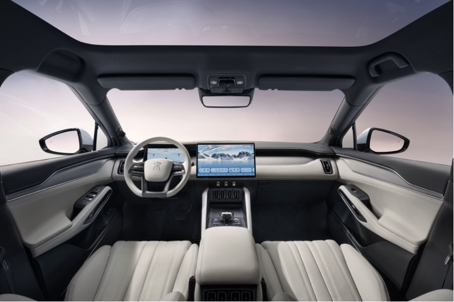 内饰设计采用“动势交错美学”,以中国结为灵感,构建出层叠、轻盈、环绕的空间秩序;三种内饰配色从自然汲取灵感:白色沙滩、丹霞晨光和旷野星空,带给用户截然不同的感官体验;NAPPA真皮、豪华麂皮等多种高级材质的应用,以及高达85%的包覆面积,让优雅和质感展露于每一处细节;大五座空间拥有2930mm的超长轴距,达到了B级车天花板,配备的一体式运动座椅,兼具通风、加热、按摩、腿托等多项舒适功能,让您拥有更愉悦的驾乘体验。