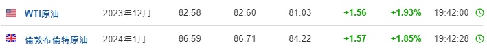 3. 截至发稿,WTI原油涨1.93%,报82.58美元/桶。布伦特原油涨1.85%,报86.59美元/桶。