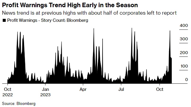 策略师们表示,企业似乎对各自业务需求的整体前景变得更加谨慎。他们认为,企业信心的减弱反映在本季度利润预警大幅上升的趋势上。他们补充称:“由于近一半的报告尚未完成,最终可能明显高于最近几个季度。”