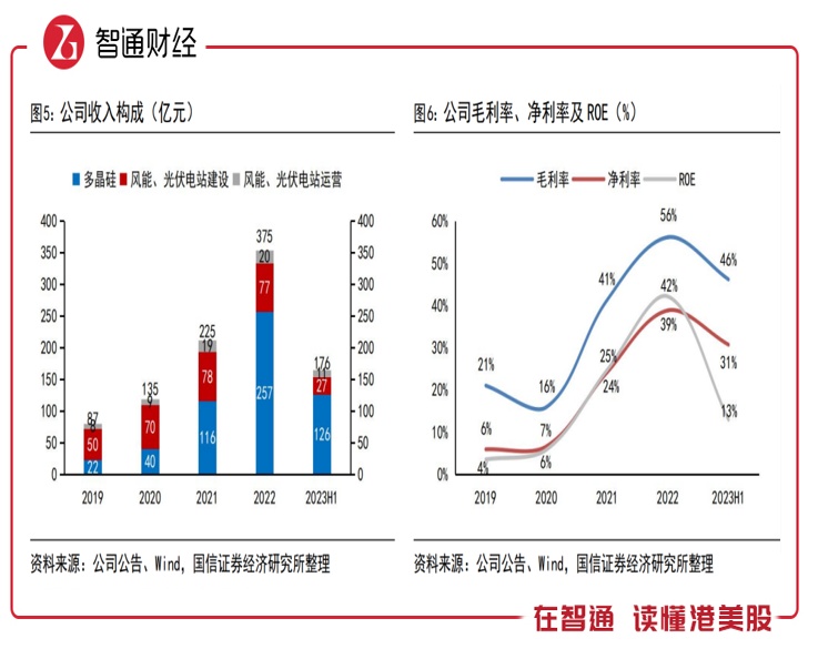 不过相比于同行,新特还是比较有看点的,主要为公司是除了多晶硅业务外,还有重资产业务,包括电站的建设和运营,这两项业务对核心业务产能有一定的消纳,但业务规模较小,影响有限。截止2023年6月,该公司电站EPC业务装机容量1.02GW,电站运营业务在运装机2.93GW,其重点在河北、山西、甘肃及新疆等地布局,预计未来两年内以电站投入为主,以分散核心业务周期性风险。