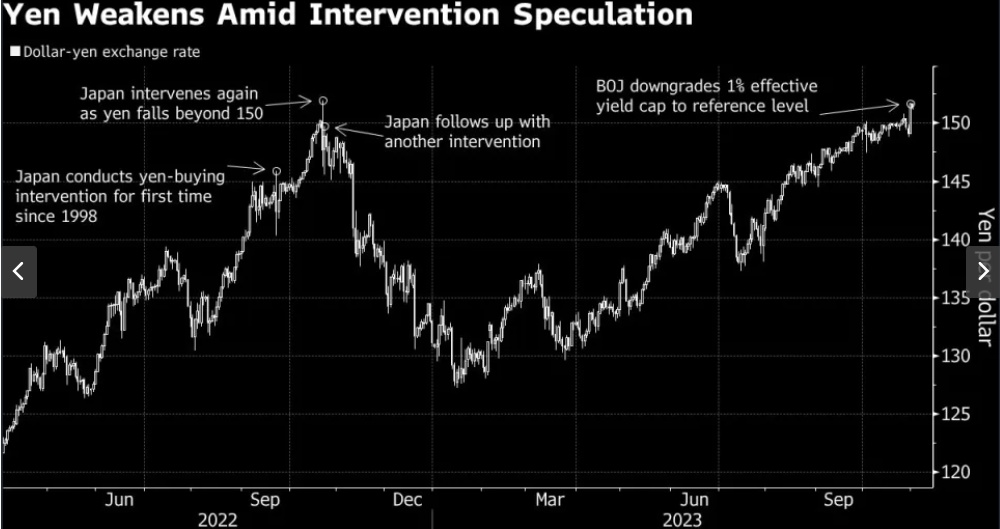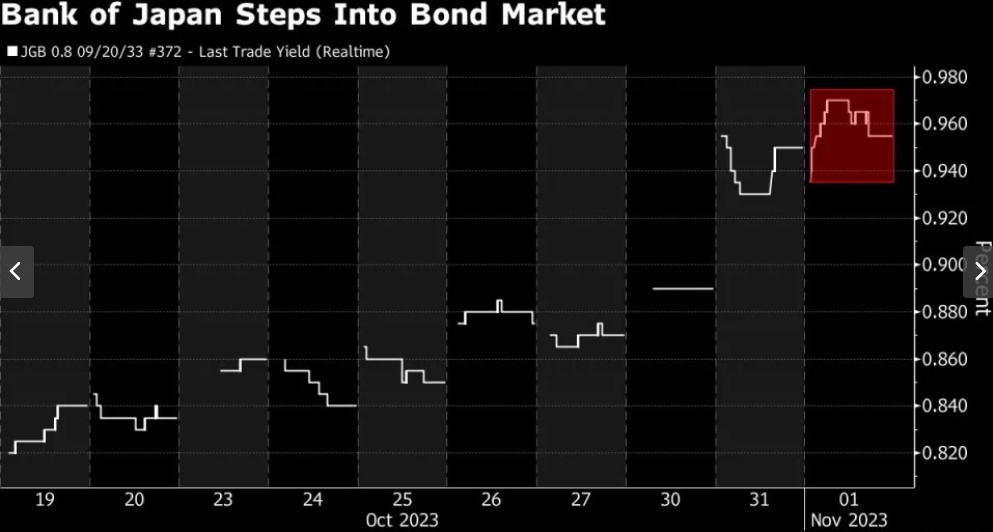 周三早上,日本财务省最高外汇官员就发出了迄今最严厉的警告之一,称当局准备干预外汇市场,以阻止日元下跌。截至周三中午,日本央行已准备介入债券市场,以减缓10年期国债收益率向1%攀升的速度。随后,在宣布放松对债券收益率控制仅一天后,日本央行周三就出人意料地入市,遏制主权债收益率的上行步伐。随着基准10年期日本国债收益率触及0.97%的十年新高,日本央行宣布了计划外购债操作。
