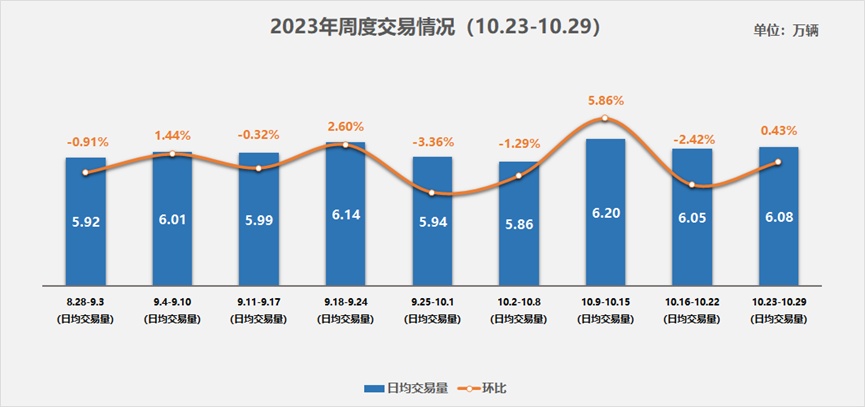 综合来看,本周交易量恢复性增长,但增幅不大,上升乏力。预计10月二手车交易量与9月份基本持平或下降2%左右。对于11月市场预期,总体会延续10月份的市场热度。