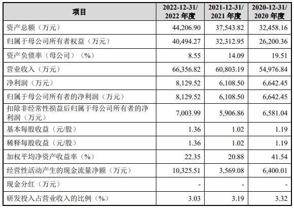 财务方面,于2020年、2021年、2022年度,中奥通宇实现营业收入分别约为5.50亿元、6.08亿元、6.64亿元。同期,该公司实现净利润分别为6642.45万元、6108.50万元、8129.52万元。