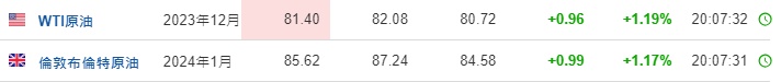 3. 截至发稿,WTI原油涨1.19%,报81.40美元/桶。布伦特原油涨1.17%,报85.62美元/桶。