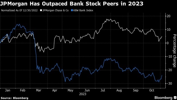 摩根大通是今年KBW银行指数中仅有的两只有望上涨的股票之一,该指数迄今已累计下跌24%。自年初美国银行业危机以来,该公司的的业绩也相较同行更为亮眼。