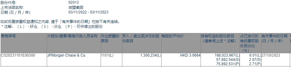 智通财经APP获悉,香港联交所最新资料显示,10月27日,小摩增持微盟集团(02013)130.0234万股,每股作价3.0664港元,总金额约为398.70万港元。增持后最新持股数目约为1.68亿股,最新持股比例为6.01%。