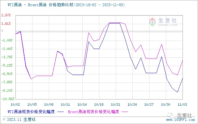 成本面利空,周内原油三连跌后小幅反弹,总体下行为主,11月2日美国WTI原油期货主力合约结算价报82.46美元/桶,周内下跌3.7%,对石化产业链利空,苯酚来自成本面难有支撑,贸易商心态受挫,市场商谈主流价格宽幅下行。