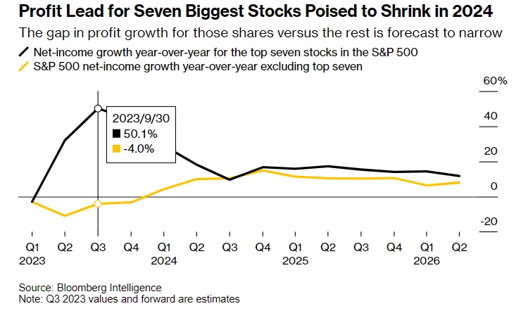 七大科技巨头2024年利润增速将有所放缓——与其他公司的利润增长差距预计将缩小
