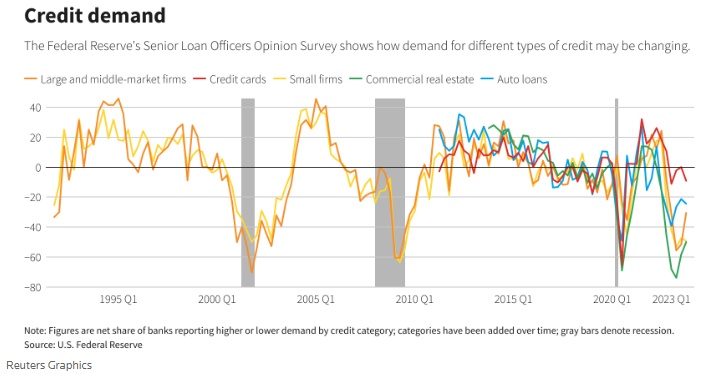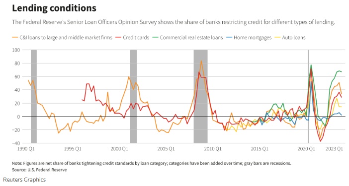 美联储在对银行贷款高级官员的最新调查中称,企业贷款标准的收紧适用于各种规模的企业,而消费者在房屋和房屋净值贷款、信用卡方面面临信贷收紧,在汽车贷款方面也面临更严格的条件。