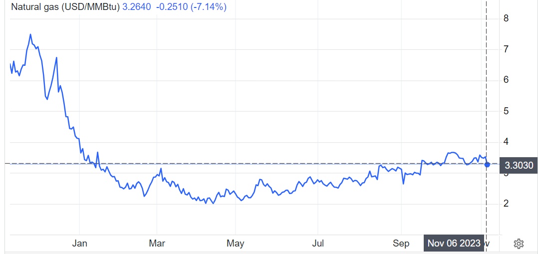 纽约商品交易所12月近月天然气期货价格下跌25.1美分,收于3.264美元/百万英热单位(mmBtu),跌幅7.1%,为10月27日以来的最低收盘价。这也是自5月22日该天然气期货下跌约7.2%以来的最大单日百分比跌幅。