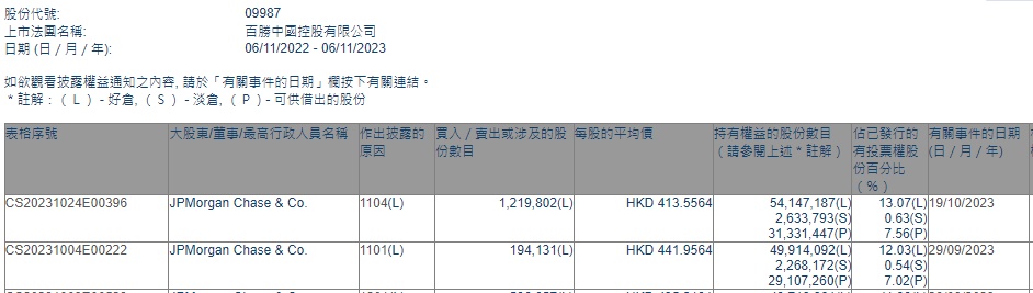 智通财经APP获悉,香港联交所最新资料显示,9月29日,小摩增持百胜中国(09987)19.4131万股,每股作价441.9564港元,总金额约为7886.12万港元。增持后最新持股数目约为4991.41万股,最新持股比例为12.03%。