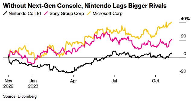 不过,Switch游戏机正面临着来自微软(MSFT.US)、索尼(SONY.US)推出的新产品的激烈竞争。根据Circana的数据,索尼的PlayStation 5是今年美国最畅销的游戏机。尽管任天堂的股价在今年上涨了15%,但仍落后于那些更新了产品的大型竞争对手。