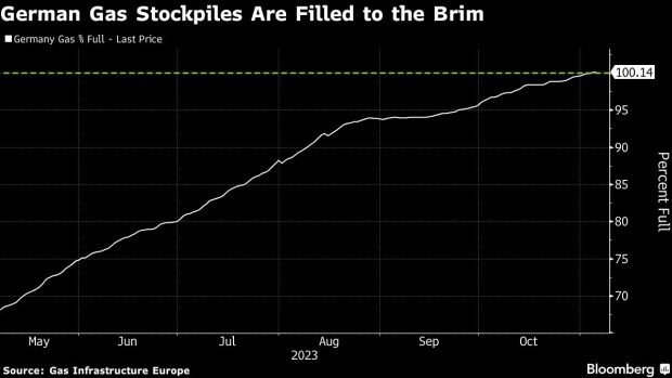 需求减少(能源危机遗留下来的副作用)和温和的天气也有助于节约天然气。气象预报机构Maxar Technologies在一份每日报告中称,预计到11月中旬,欧洲大陆大部分地区的气温将比往常高。