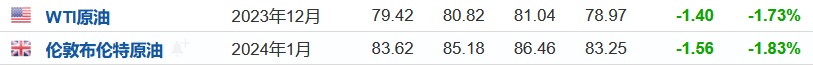 3. 截至发稿,WTI原油跌1.73%,报79.42美元/桶。布伦特原油跌1.83%,报83.62美元/桶。