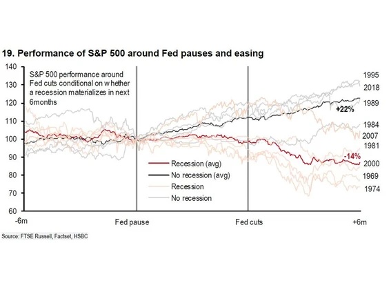根据美联储避免经济硬着陆的历史经验,在政策转向时刻,标普500指数从美联储首次暂停加息到美联储开始降息六个月后平均上涨22%。而策略师们预计,富时环球指数(FTSE All-World Index)明年将收于480点,较周二的水平上涨近10%。汇丰策略师表示,美国和新兴市场仍是他们增持的地区,这两个市场可能提供最具弹性的盈利预期。