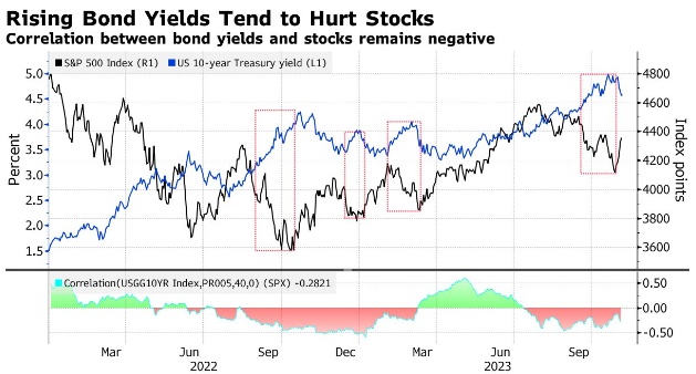 贝莱德研究部门负责人Jean Boivin的观点与上述两位看空策略师相吻合。Boivin指出,美国股市在年底的任何反弹都可能是短暂的,因为股市并没有完全反映利率在更长时间内保持较高水平的前景。美国国债收益率已攀升至多年高点,因投资者准备迎接美联储在较长时期内保持紧缩货币政策,历史表明,这种模式往往与股市呈负相关。