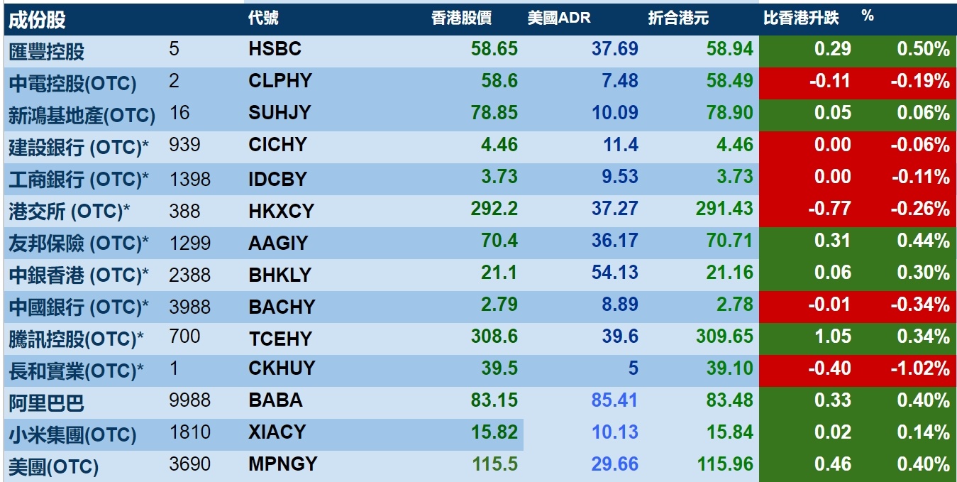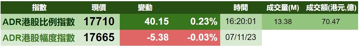 智通财经APP获悉,周二美股三大指数悉数上涨,港股ADR指数上涨,按比例计算,收报17710点,较香港收市升40.15点或0.23%。