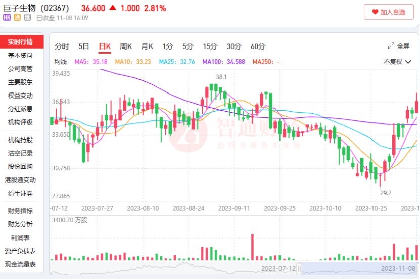 而这一结论也能得到头部医美品牌巨子生物股价走势的验证。智通财经APP观察到,10月24日后,巨子生物股价走势先是在前3个交易日探底至29.2港元,然后在接下来的8个交易日内持续发力,并于11月8日盘中达到最高37.35港元,近半个月内公司股价累计最高涨幅达到27.91%。