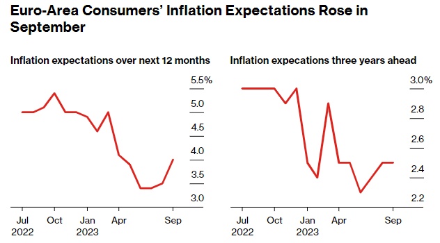 谈到欧洲经济前景,欧洲央行的调查显示,消费者变得更加悲观,预计未来12个月经济将萎缩1.2%,而此前的预期为萎缩0.8%。上周的数据显示,欧元区第三季度产出意外萎缩0.1%,使其面临2023年下半年出现温和衰退的风险。