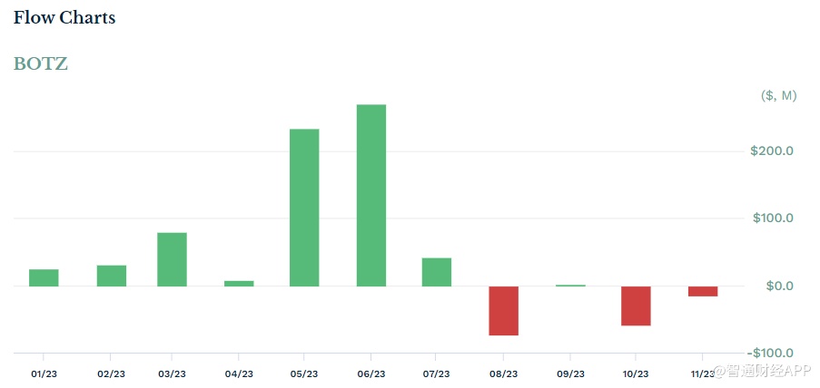 CFRA Research的Ullal表示,总体而言,在Chat GPT-4发布后,以人工智能和机器人技术为重点的ETF在2023年开局强劲,今年前三个季度的资金流入量超过19亿美元。
