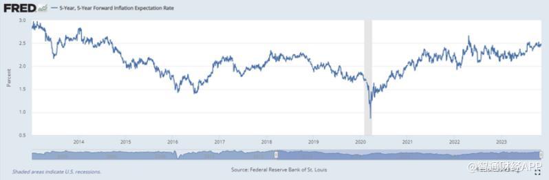 智通财经APP获悉,5年远期通胀预期率跟踪的是对从今天开始的五年内平均通胀率的预期,该通胀率目前接近2.5%,接近2013年以来的最高水平。