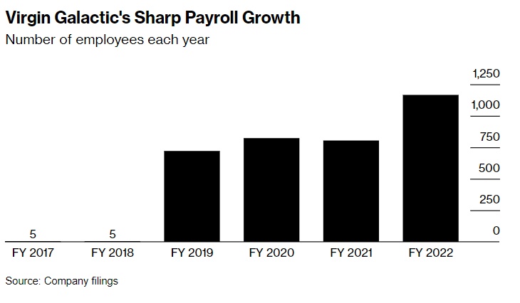 维珍银河工资数额大幅增长——每年的员工数量都在增加