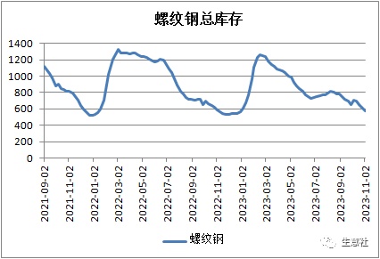 10月份以来,螺纹钢库存持续下降,处于两年历史低位。其中,螺纹钢总库存为578.31万吨,较10月初减少130.35万吨,降幅为18.39%。
