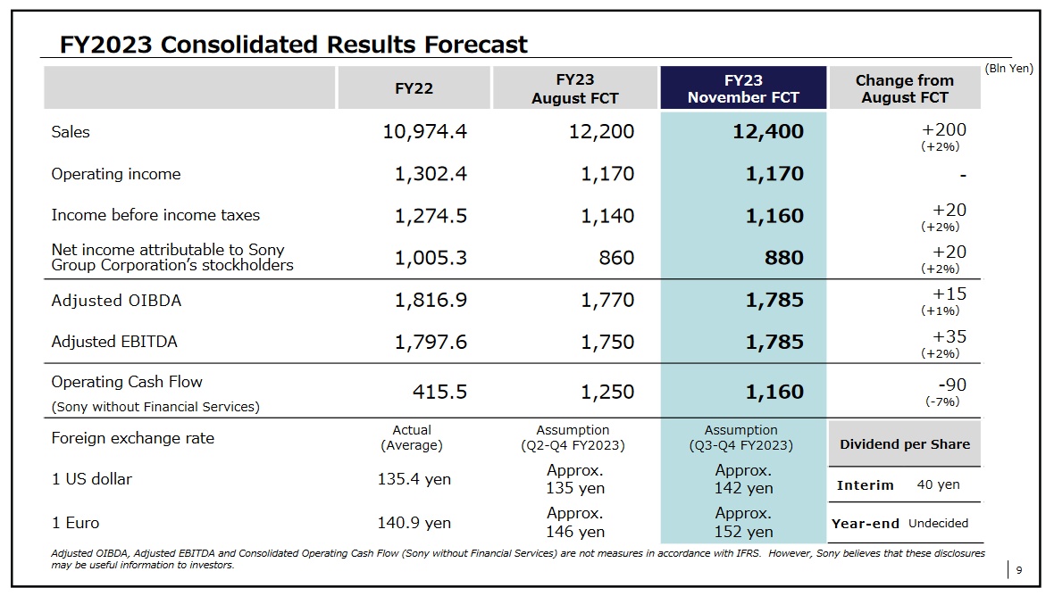 展望未来,索尼上调了全年业绩预期。索尼目前预计,2023财年全年销售额为12.4万亿日元,高于此前预期的12.2万亿日元;预计归属于公司股东的净利润为8800亿日元,高于此前预期的8600亿日元。与此同时,索尼重申全年营业利润为1.17万亿日元的预期,但低于市场预期的1.21万亿日元。