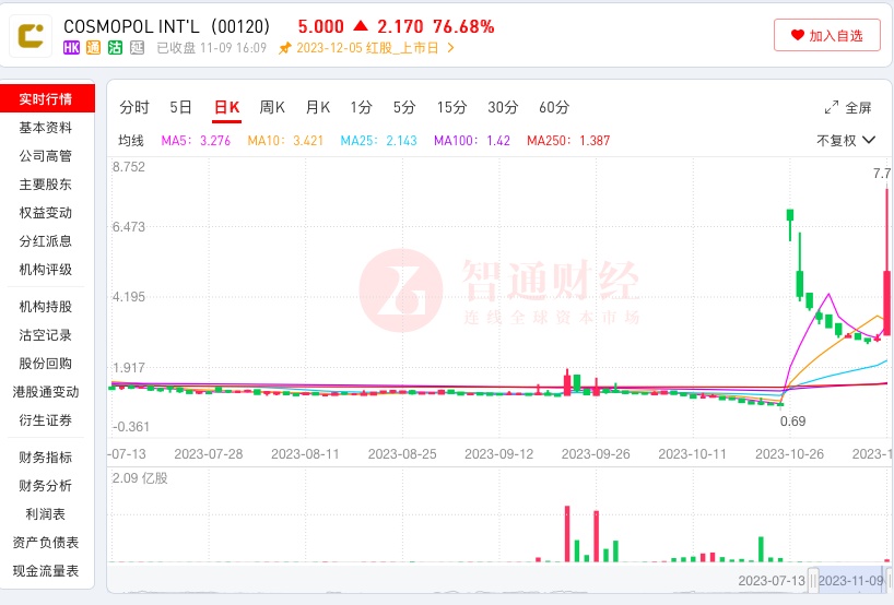 10月26日,四海国际公布,四海股份合并已于2023年10月26日起生效。此外,深交所公告,港股通标的证券名单发生调整并自2023年11月9日起生效,调入COSMOPOL INT'L。