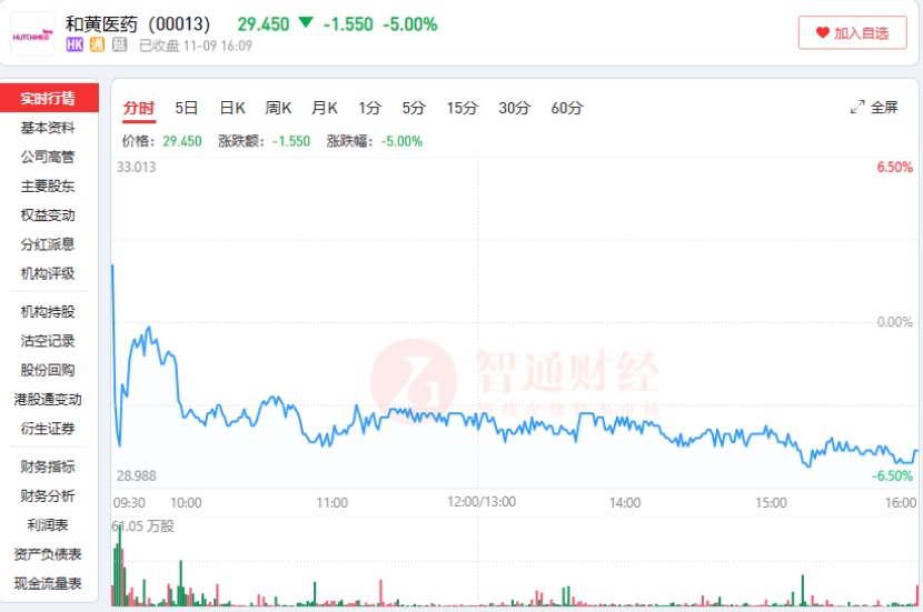 不过,二级市场对这个好消息似乎并不买账。智通财经APP观察到,11月9日,和黄医药低开低走,放量下跌,盘中股价最大跌幅达到6.50%,成交额达到2.8亿港元,创下今年以来的最高成交额纪录。面对利好,更多的投资者选择了“下车”。