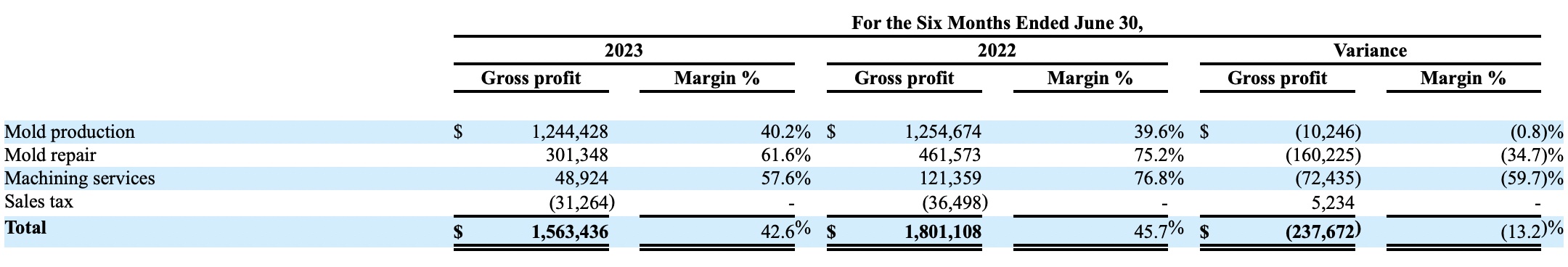 据招股书显示,公司的毛利由2021年的401.27万美元下滑至2022年的391.31万美元,毛利率则由51.5%下滑至仅48.8%。到了今年上半年,公司毛利率进一步下滑至仅42.6%,公司毛利也同比大降13.2%至156.34万美元。对此公司解释称,作为一家基于订单的生产公司,公司的所有生产、维修和加工服务都是定制的,这导致其成本因不同订单处理的难度而异。而报告期内毛利及毛利率的下降主要是由于处理服务成本和折旧费用的增加超过了收入。