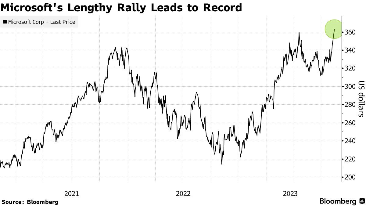 微软股价创新高表明,投资者们对该股的期望依然很高。微软目前的市盈率为30.5倍,低于近期32.5倍的峰值,但相对于其长期平均水平而言仍有相当大的溢价。