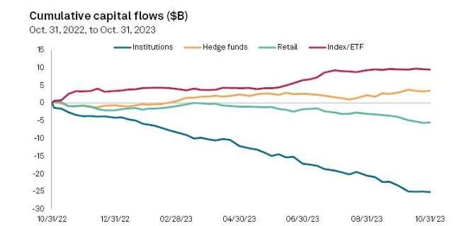 标普全球发行人解决方案执行董事Christopher Blake表示:“在过去几个月之前,他们可能是第一个想到逢低买入、利用回调获利的群体。”“我们认为,这更像是零售投资背后的一些长期宏观趋势的转折点。”