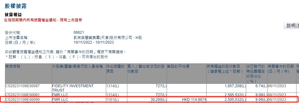 LLC增持凯莱英(06821)3.02万股,每股作价114.8874港元,总金额约为346.96万港元。增持后最新持股数目约为250.55万股,最新持股比例为9.09%。