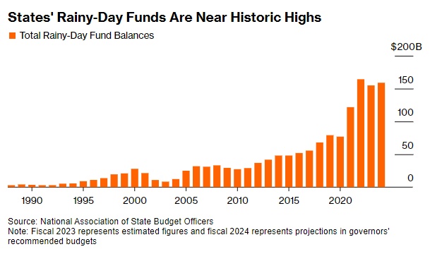 “投资者将关注的是各州将以多快的速度动用应急资金,以及他们利用哪些其他工具来抵消资金减少,”Lee表示,“例如,除了动用储备外,他们是否还会提高税收、削减开支。”