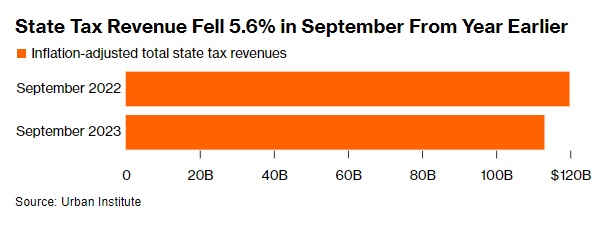 Institute)的最新分析,经通胀调整后,美国9月份州税收总收入连续第14个月下降,同比下降5.6%。在提供信息的州中,46个州中有34个报告同比下降。