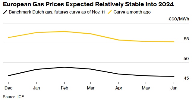 基准合约继上周下跌3%后下跌。上周末,以色列命令雪佛龙恢复其主要油田Tamar的生产,该油田在10月7日和哈马斯冲突爆发后于上月关闭。输往邻国埃及的天然气供应因此中断,限制了埃及向欧洲供应液化天然气的能力。