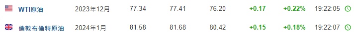 3. 截至发稿,WTI原油涨0.22%,报77.34美元/桶。布伦特原油涨0.18%,报81.58美元/桶。