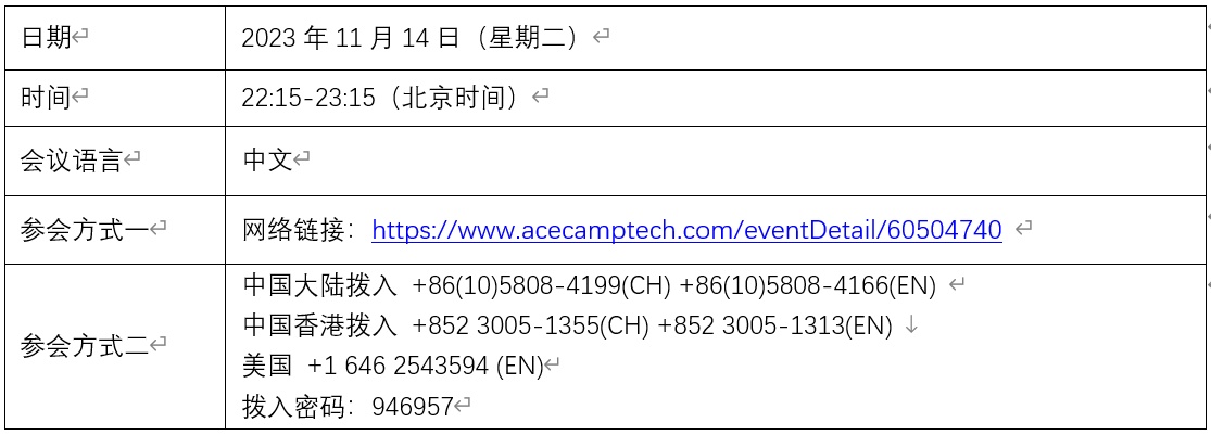 公司将于北京时间2023年11月14日(星期二)22:15举行业绩电话会议,讨论2024财年第一季度的业绩。