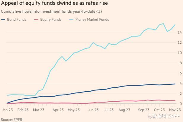在美联储去年进行了一系列历史性加息后,经过10年的牛市,股市前景已发生改变。养老基金和财富管理机构纷纷减少股票投资,转而被货币市场基金和债券的高利息所吸引。尽管今年股票基金的净流入实际上持平,但专业投资组合经理们依然热衷于强调股市的投资机会,即使由宽松货币政策驱动的长期上涨趋势已经结束。