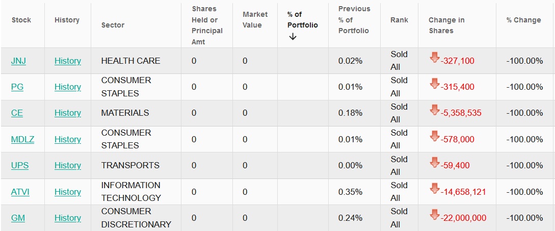 前五大卖出标的分别是:动视暴雪、通用汽车、惠普(HPQ.US),塞拉尼斯,Markel Group(MKL.US)。