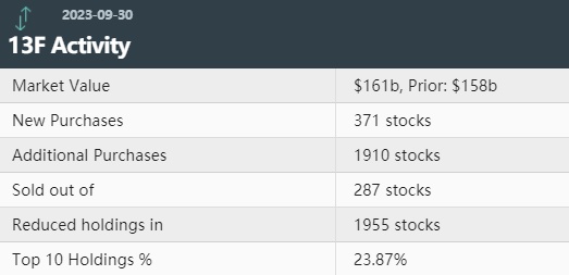 据统计,巴克莱银行第三季度持仓总市值达1610亿美元,上一季度总市值为1580亿美元,环比增长2%。巴克莱银行在第三季度的持仓组合中新增了371只个股,增持了1910只个股。同时,巴克莱银行还减持了1955只个股,清仓了287只个股。其中前十大持仓标的占总市值的23.87%。