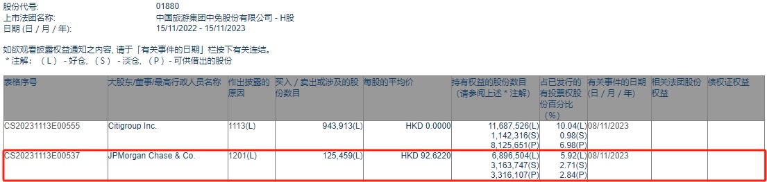 智通财经APP获悉,香港联交所最新资料显示,11月8日,小摩减持中国中免(01880)12.5459万股,每股作价92.622港元,总金额约为1162.03万港元。减持后最新持股数目约为689.65万股,最新持股比例为5.92%。