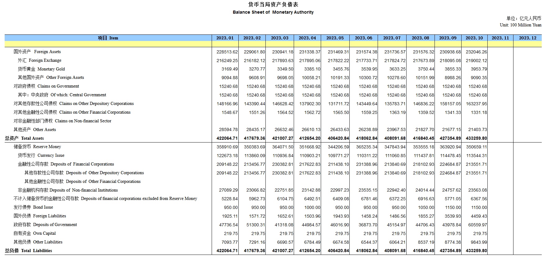 智通财经APP获悉,11月15日,中国人民银行披露的数据显示,10月末央行外汇占款约为21.90万亿元人民币,较上月末环比增加907.04亿元。货币黄金占款约为3953.79亿元人民币,较上月末环比增加98.46亿元。其他国外资产占款约为9090.35亿元人民币,较上月末环比增加102.09亿元。