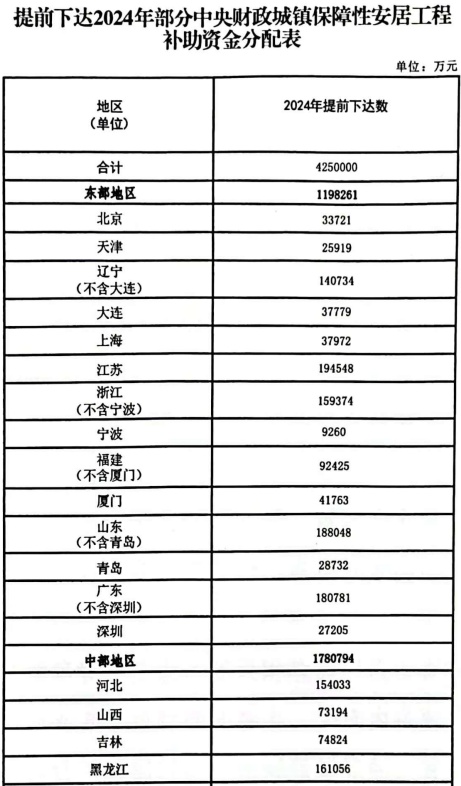 附件:提前下达2024年部分中央财政城镇保障性安居工程补助资金分配表