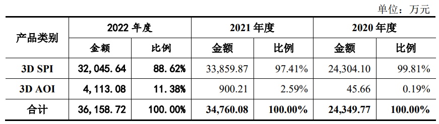 报告期内,公司主营业务收入均来自机器视觉检测设备产品的销售收入,占营业收入的比重超过93%,具体构成如下: