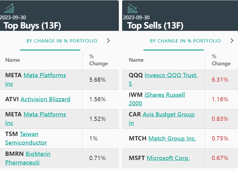 从持仓比例变化来看,野村第三季前五大卖出标的包括:纳指100ETF看涨与看跌期权、罗素2000指数ETF看涨与看跌期权、Avis Budget Group In(CAR.US)、Match Group Inc(MTCH .US)以及微软(MSFT.US)看涨与看跌期权。