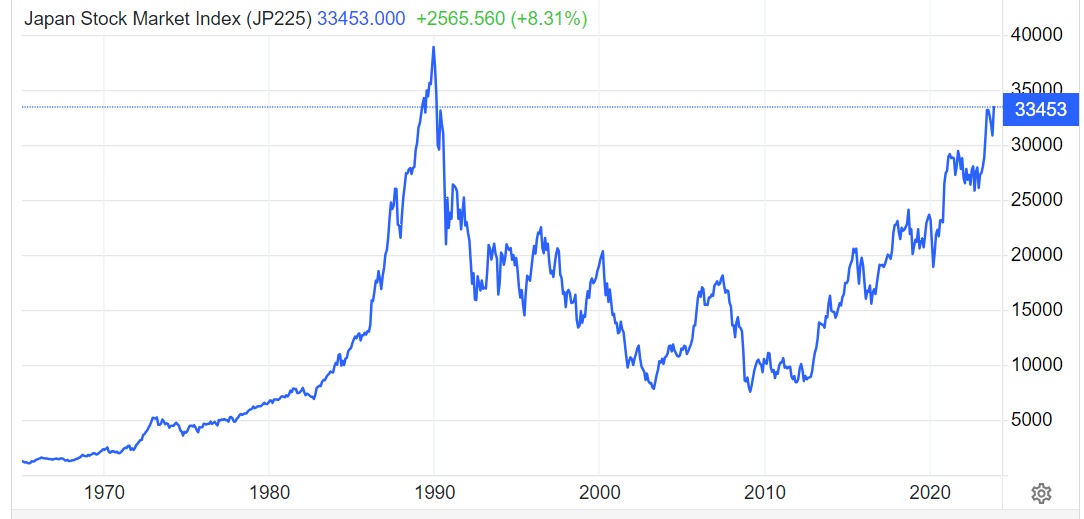 这些推动措施,加上日本持续多年的财政刺激,使得估值在“失去的30年”期间埋在谷底的日股有所反弹。终于自今年以来,在全球AI投资热潮——日本股市有着东京电子等众多顶级芯片设备及原材料制造商,日本央行持续鸽派助攻,以及“巴菲特效应”提振下,全球资金涌入日本股市,日股开启史诗级反弹。