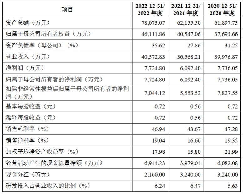 财务方面,2020年度、2021年度以及2022年度,海力威实现营业收入约为4.00亿元、3.66亿元以及4.06亿元人民币;同期,归属于母公司所有者的净利润为7736.05万元、6092.40万元以及7724.80万元人民币。