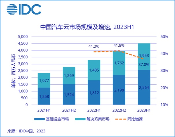 智通财经APP获悉,IDC发文称,2023上半年,一季度汽车消费景气度不足,更加内卷的行业环境导致汽车产业面临经营困境,随着云计算成为客户重要的成本开支,客户在今年开始有意识的控制云用量的增长。二季度,特斯拉自动驾驶在国外的落地效果及商用化进程远超预期,行业共识智能化拐点提前到来,国内车企更加迫切的推进“智能化”进程,对于云计算的需求急剧上升。IDC《中国汽车云市场(2023上半年)跟踪》报告显示,2023上半年中国汽车云市场整体规模达到45.2亿元人民币,同比增长37.0%。